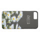 Modern stylish, personalised phone case with sunny daisies on dark grey background.