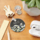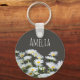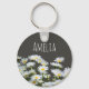 Modern, stylish personalised keychain with sunny daisies on dark grey background.