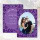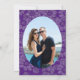 Daisies Purple Save the Date Photo Card with an oval cutout and daisy translucent pattern. Personalise this template with your information and the couple's photo. You can customise the colour and font when you click on Edit.