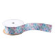 Satin ribbon is shown in a lovely daisy print.
