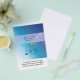 A pretty design featuring a shaded blue background with a band accenting names and message. Pretty colourful daisies add a classy touch. Customise with information as desired.