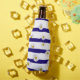 Blue watercolor horizontal stripe pattern with white daisies on white.