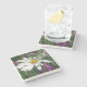 The coasters are gorgeous, a quality feel and heavy weight. They look like a precious archeological find. A rustic stone juxtaposed with a modern floral black and white print. I like the way the print goes slightly imperfect on the cut stone edges giving them a kind-of natural beauty.