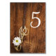 The casual yet classy White Daisy and Horse Bit Country Western Wedding Table Numbers will add a touch of charm to each table at your rural farm or ranch style bridal shower, engagement barn party or marriage reception. This rustic chic design feature a quaint floral photograph of a white daisy flower blossom, pearl necklace, horse bit and leather reins with a brown weathered barn wood background.