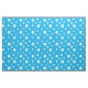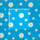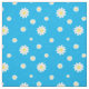 Colourful blue fabric printed with white daisies, connected by pale white swirls. Just like a Daisy chain.