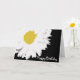 A birthday card featuring an illustration of a daisy at left over a black background. White text at right says "Happy Birthday." Blank inside.