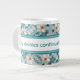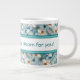 Giant coffee mug in a turquoise accented on this watercolor flower daisy pattern. The centre stripes, and text can be personalised to any colour and message, or text and stripes are removable.