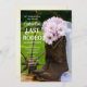 Invite guests to a casual pre marriage barn party honouring the cowgirl bride to be with the quaint Rustic Pink Daisies and Cowboy Boots Last Rodeo Western Bachelorette Party Invitation. Customise it with the specific details of your country style event. This charming custom ranch theme Party Invite features a farm photograph of a pair of brown leather cowboy boots filled with a bouquet of pink daisy flowers and white bridal veil with an old antique wagon wheel with a blurred green natural background. Perfect inspo for an informal barn party celebration.