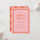 These wedding invitations feature a bold orange colour paired with a light pink, creating a vibrant and playful aesthetic. The retro wave border adds a touch of nostalgia and adds a fun and unique element to the design. The invitations come in multiple colour options, giving you the flexibility to create a cohesive look for your special day. The coordinating stationery is designed to mix and match, allowing you to create a custom and coordinated look for your wedding.