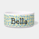 Daisy print customisable ceramic pet bowl, available in medium and large sizes.