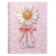 A soft daisy notebook featuring a hand-painted flower with a delicate bow on a pastel pink background.