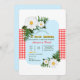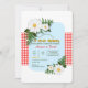A summer-theme invitation shown as an engagement party bbq but well-suited for any summer celebration. The white background has a wide, gingham, ribbon-centre and corner clusters of white daisies. (<a href='http://www.freepik.com/free-vector/pretty-bachelorette-invitation-with-realistic-daisies_1086421.htm'>Designed by Freepik</a>). <br/><br/>The card is easy to customise with your wording, font, font colour, paper shape options and choice of six paper types.<br/><br/>Not exactly what you're looking for? All our products can be custom designed to meet your needs at no extra charge.<br/><br/>Simply contact us at heartfelthelper@gmail.com<br/><br/>Coordinating products available: Just ask us!