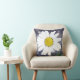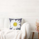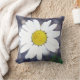 Daisy Pillow or Cushion. Photograph of a beautiful flower white petals with a golden yellow centre on a blue/green muted, dappled background. I took this photograph on the edge of a forest where this single flower was growing strong. The back of the cushion is a golden yellow.