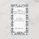 A custom reception card, business card template with script and block letters on an elegant damask pattern of daisies and leaves in black on white. Customise It to change background colours, pick your fonts and add custom text and more, even save your design for later.