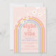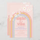 Retro inspired Eight is a Vibe 8th birthday invitation with hippie style pastel rainbow, and daisies