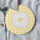 A design featuring a pretty daisy flower with white petals and a yellow centre. The background is a white and yellow gingham check pattern. A nice girly floral design.