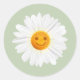 Daisy flower floral graphic design features a white daisy with smiley face flower core in simple, minimal style, bringing you happy and positive feelings. The background colour is customisable. Click the Customise button and choose your favourite colour!