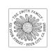 Return address rubber stamp featuring a drawing of a daisy and your name and address around the flower in a whimsical style font.