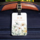 I was happy with the acrylic tag but it came with a thin leather strap to attach the tag to luggage (like a cat collar). I replaced the strap with a metal ring off of a key ring as the leather strap would come undone or break easily as luggage is sometimes handled without much care by airlines. Printing is great. Colours and positioning of the design I put on the tag were perfect. Very pleased.
