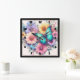 A clock with a beautiful illustration. A heart-shaped bouquet of flowers in pastel blue, green, purple and yellow. With a lovely blue butterfly hovering in front.
