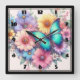 Daisy Flowers with a Beautiful Butterfly Square Wall Clock
