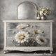 Decoupage_Boutique presents a serene daisy design that transforms everyday furniture into cherished art pieces. This enchanting composition features luminous white daisies with golden centres against a dreamy, misty backdrop. The subtle play of light and shadow creates a timeless atmosphere of pastoral elegance.