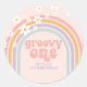 Daisy Groovy One Pastel rainbow first birthday Classic Round Sticker