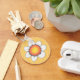 Bright and cheerful painted daisy set against gold yellow stripes.