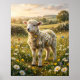 A sweet daisy lamb stands in a blooming pasture where innocence meets floral sunshine. Realistic lamb anatomy blends with white daisy petals, golden centers, soft wool textures, and fresh green leaves across the shoulders, crown, and back. Rolling fields, wooden fences, drifting petals, blue skies, and warm sunlight create a peaceful countryside mood full of joy. This charming fantasy farm design brings softness to nurseries, bedrooms, farmhouses, or gift collections. Perfect for lamb lovers, spring decor fans, and cottage style interiors.