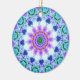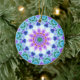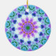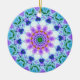 A round ornament with a kaleidoscopic mandala pattern based on a photo of daisies.