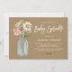 Mason jar theme baby sprinkle invitation. Invite family and friends with this rustic floral baby shower invitation. It features white daisies, pink rose and baby's breath in a mason jar with faux kraft paper background. Personalise by adding names, date, time, venue and other details. This floral invitation is perfect for autumn baby sprinkles.