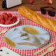 Designer daisy paper plates, for summer celebration. Personalise the text to suit your special celebration.