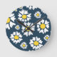 Daisy Pattern, Floral Pattern, White Daisies Round Clock