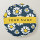 Daisy Pattern, White Daisies, Your Name Round Cushion