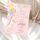 Sweet bunny themed first birthday invitation for a baby girl featuring a white bunny , some balloons and daisies on a light pink background. This some bunny is turning one first birthday invitation is ideal for someone looking for a modern style invitation.