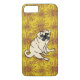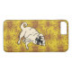 An adorable pug by Tracey Wirth Designs, placed on a background of daisies from one of Tracey's fabric design collections.