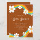 Daisy Rainbow Retro Typography Hippie Baby Shower Invitation