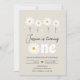 Daisy Retro Boho Party Creme Sand First Birthday Invitation