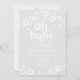 Retro inspired daisy and light Grey baby shower invitation with 70's style daisies and boho fonts and colours.