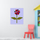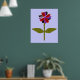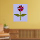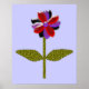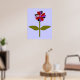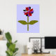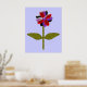 This fantastic floral print features a digital image of a daisy with a green stem with two green leaves on it and purple, red and black coloured petals with a purple centre. The petals look like they are made of shining plastic that has caught the light and caused an iridescent effect. The background is a calming blue colour and there is a black broder around the print. This design is available on several different sized prints, the largest of which is shown here.