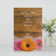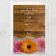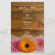 Customise the charming Daisy Trio Country Barn Wedding Menu with the details of the meal that you will serve at your casual yet classy bridal shower luncheon, marriage reception dinner or post wedding brunch. It can be personalised with the names of the bride and groom, venue location and event date. This rustic chic custom ranch theme wedding menu features a quaint floral photograph of two pink daisies and one orange daisy, white bridal veil and a brown weathered barn wood background. Perfect inspo for your farm style celebration event.