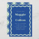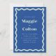 These wedding invitations feature a bold blue colour paired with a light mint, creating a vibrant and playful aesthetic. The retro wave border adds a touch of nostalgia and adds a fun and unique element to the design. The invitations come in multiple colour options, giving you the flexibility to create a cohesive look for your special day. The coordinating stationery is designed to mix and match, allowing you to create a custom and coordinated look for your wedding.