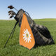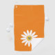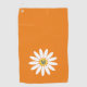 This golf towel features a modern design consisting of large single daisy with a customisable initial in the middle. You can remove the initial for a daisy on a plain background. This white daisy is set against an orange background. The initial is slate blue. A nice gift your for favourite golfer and her ladies golf league players. The solid colour background helps hide dirt when you clean your clubs and balls. This design matches other golf items in my store including golf balls, ball markers and divot tools. Get her a matching set!