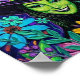 Vibrant witch painterly, smiling green-faced sorceress in a jeweled black hat surrounded by lush, multicolored flowers and whimsical botanical details.