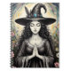This notebook features a serene Witch in a field of daisies taking a mindful moment to pray and give gratitude for her blessings.