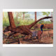 This is a scene depicting the giant dromaeosaur, Dakotaraptor, as it ambushes a pair of Anzu, another feathered dinosaur from the late Cretaceous Hell Creek Formation.