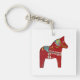 The Dala Horse keychain design on this keychain is from a wooden horse carved and painted by Julia Morrill