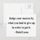 "Judge your success by what you had to give up in order to get it." - Dalai Lama
