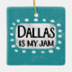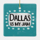 "Dallas Is My Jam" is a fun text design with a white accent shape surrounded by white whimsical textured dots.