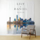 This elegant Dallas skyline watercolor wedding photo booth backdrop can be personalised with your information in modern typography. Designed by Thisisnotme©